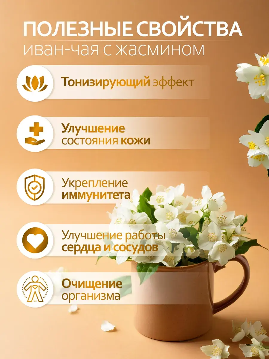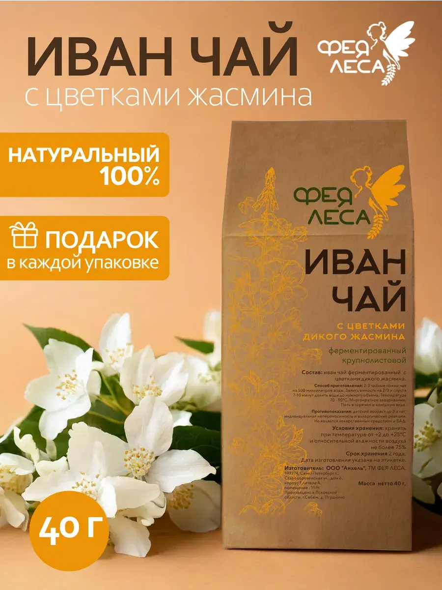 Иван-чай ферментированный с цветками жасмина от бренда "ФЕЯ ЛЕСА" – это натуральный продукт из России, созданный с заботой о вашем здоровье и вкусовых предпочтениях. Этот уникальный фиточай обладает нежным натуральным вкусом благодаря высококачественному сырью, собранному вручную в экологически чистых районах.. Травяной напиток с жасмином идеально подойдет как для личного потребления, так и станет отличным подарком для близких людей. Благодаря своей универсальности и элегантной подарочной упаковке, этот чай может стать приятным дополнением к праздничному столу или просто хорошим поводом порадовать себя и своих любимых.