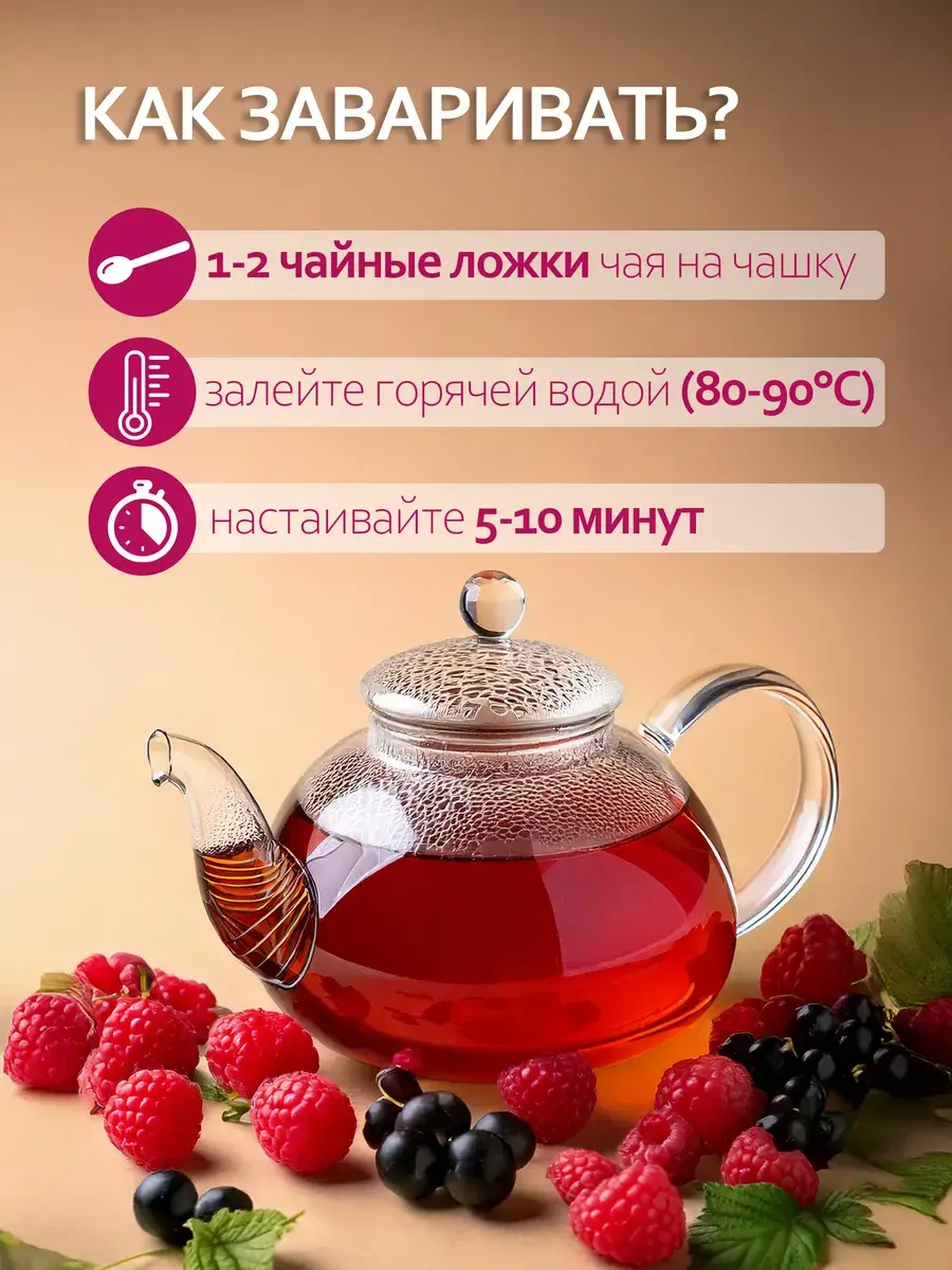 ЧАЙ "Малина Да Смородина" — это уникальный травяной напиток из свежих лесных ягод от бренда "Фея Леса", настоянный на полезных свойствах черной смородины и сладкой малины, добавлена освежающая нотка мяты. Этот ягодно-травяной тизан придаст сил и энергии благодаря витаминам и антиоксидантам, содержащимся в каждой капле. Подарите себе моменты наслаждения природой и ее дарами вместе с этим чудесным чайным напитком.Побалуйте себя ароматным согревающим чаем! Наш ягодно-травяной чай содержит сушеные плоды черной смородины и малины, которые богаты витаминами и антиоксидантами. Он подарит вам тепло и уют холодными вечерами.