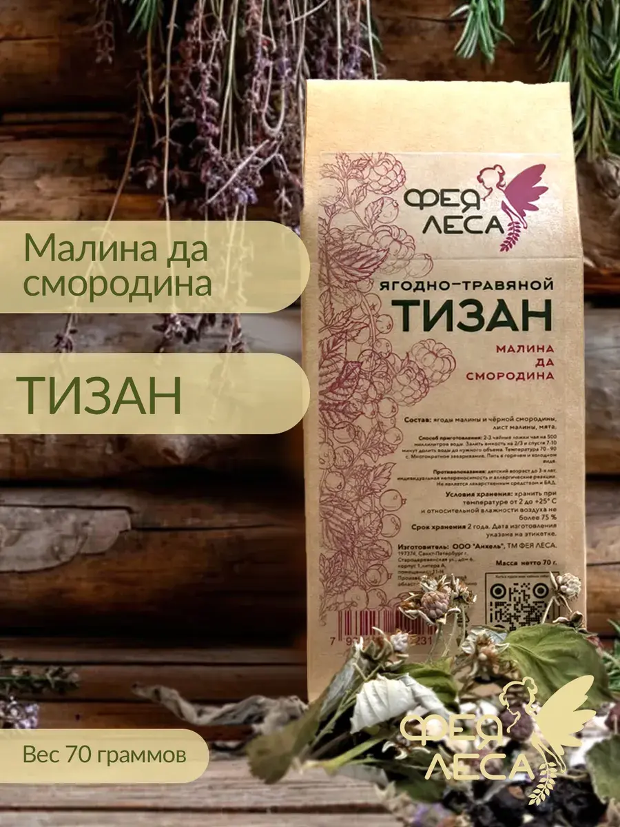 Чай с малиной, мятой и черной смородиной — это уникальный травяной напиток из сушеных лесных ягод от бренда "Фея Леса", настоянный на полезных свойствах черной смородины и сладкой малины, с добавлением освежающей мяты. Этот ягодно-травяной тизан придаст сил и энергии благодаря витаминам и антиоксидантам, содержащимся в каждой капле. Подарите себе моменты наслаждения природой и ее дарами вместе с этим чудесным чайным напитком.Побалуйте себя ароматным согревающим чаем! Наш ягодно-травяной чай содержит сушеные плоды черной смородины и малины, которые богаты витаминами и антиоксидантами. Он подарит вам тепло и уют холодными вечерами.